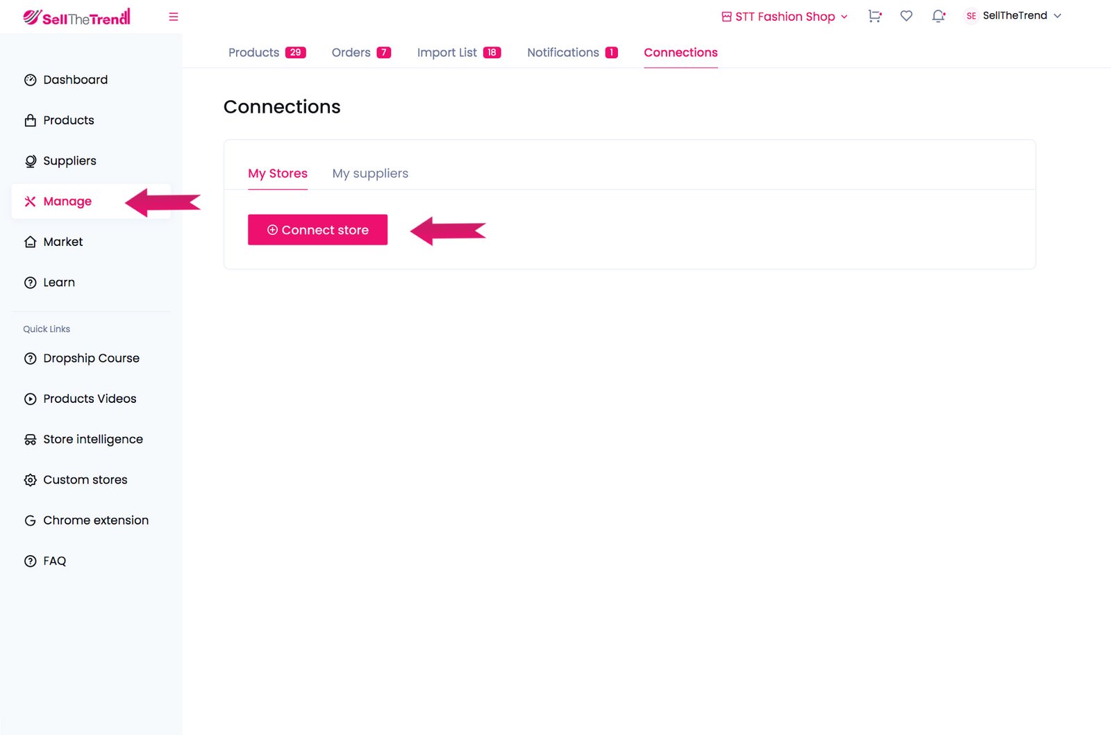 Connect StoreGetting started with Shopify dropshipping and Sell The Trend