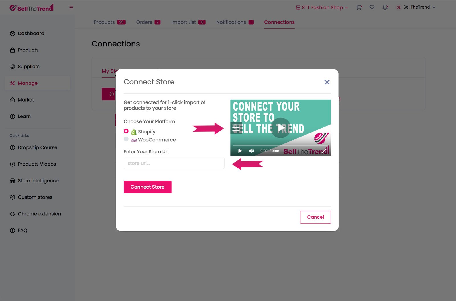 Connect StoreGetting started with Shopify dropshipping and Sell The Trend